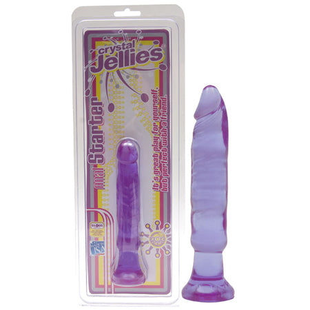 Crystal Jellie Anal Starter 6in. (Purple)Doc Johnsons Crystal Jellies Anal Starter is a soft and flexible erotic tool for anal enjoyment. Realistic head and veined, slender shaft are ideal for beginners. Flared base makes the toy suitable for gentle ass play. No bedroom should be without this classic! Available in Pink, Clear and Purple. Made from non-phthalate body safe material, which inlcudes Doc's anti-bacterial Sil-A-Gel formula and is proudly made in America.