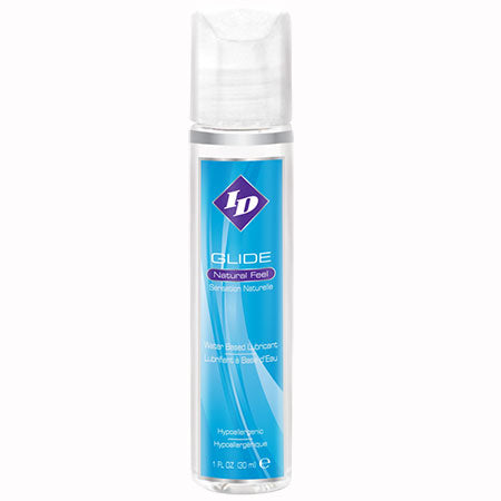 ID Glide Sensual Lubricant (1oz)This personal lubricant is FDA approved and Dr. recommended. It is water based and condom compatible. Odorless and colorless, this non staining formula really does have it all! Glide is silicone toy safe and as pure as your body's own natural lubrication.