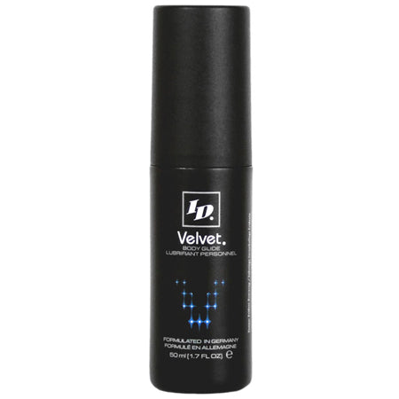 ID Velvet (1.7oz)Formulated in Germany, ID Velvet Body Glide is one of the most luxurious of all lubricants. ID Velvet's unique, super premium formula is extra long lasting, latex compatible, and fragrance free. Never sticky or tacky, this velvet smooth lubricant also serves as a fantastic skin conditioner and moisturizer.Silicone Based. Waterproof. Phthalates Free. Latex Compatible. 1.7 fluid ounces.