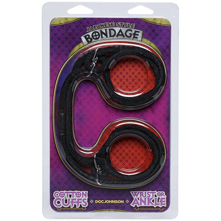 Japanese Style Bondage - 100% Cotton Wrist or Ankle Cotton Cuffs Black