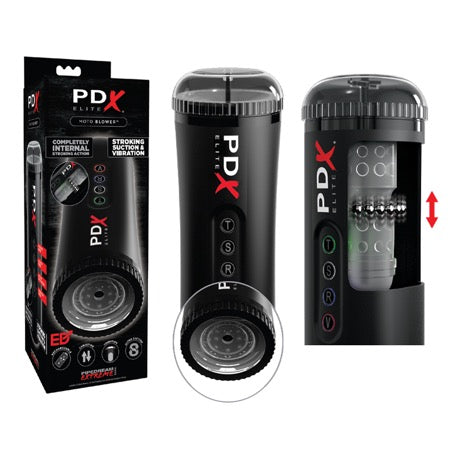 PDX Elite Moto Blower Rechargeable Thrusting Vibrating Suction Masturbator Clear/Black