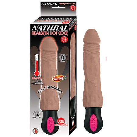 Natural Realskin Hot Cock #3 Fully Bendable 12 Function USB Cord Included Waterproof Brown