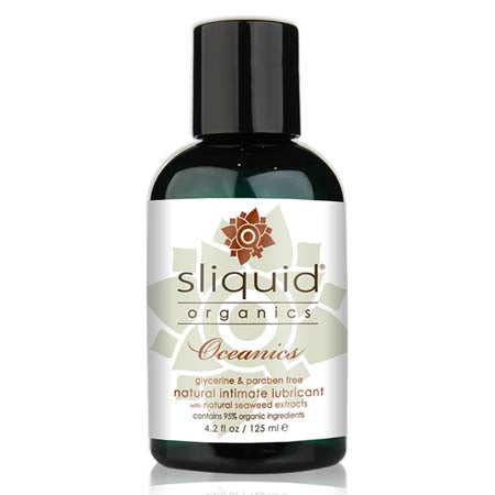 Sliquid Oceanics (4.2oz)Sliquid Oceanics is the newest addition to the Organics family of products, and takes the infusion of organic botanicals to a whole new level with the addition of extracts of the sea. Carrageenan offers the benefit of being one of the mosts effective lubricants found in nature, and has been shown in lab tests to help prevent the spread of HPV (Genital Warts), which is one of the most common STD's. Wakame is a red algae often used for it's anti-wrinkle skin revitalizing properties, as well as being a natural source of Vitamins A, B, C and E. Nori is a green algae, and is an effictive natural moisturizer, as well as being a great source of B Vitamins (Folic Acid) and minerals, including Zinc, Iodine, Iron Copper.Offering women a healthier choice, this glycerine and paraben free organic lubricant has been blended with certified organic botanical extracts that heal and support the body. Aloe Vera and Alfalfa are a natural skin soothers. Vitamin E is well known for it's healing properties, and Green Tea Hibiscus are well documented for thier envigorating skin elasticity properties. Flax is an organic source of Omega-3 fatty acids, and Sunflower Seed is rich source of amino acids and minerals.